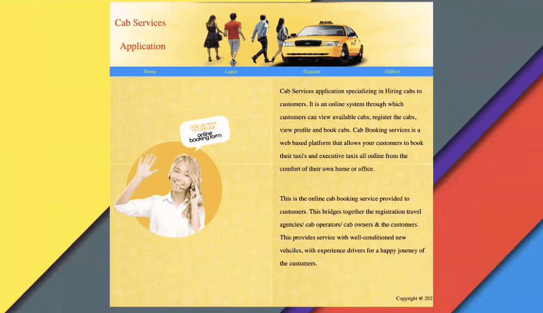 Developed a real-time Cab Service online system for customers to view and book available cabs.